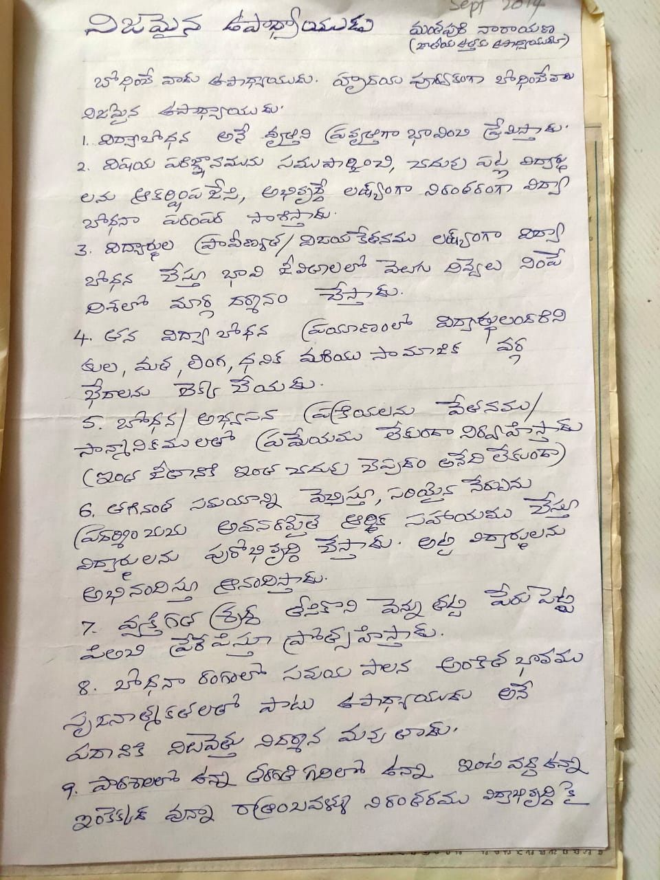 REAL TEACHER ( in my view ) Manthapuri Narayana, National awardee.